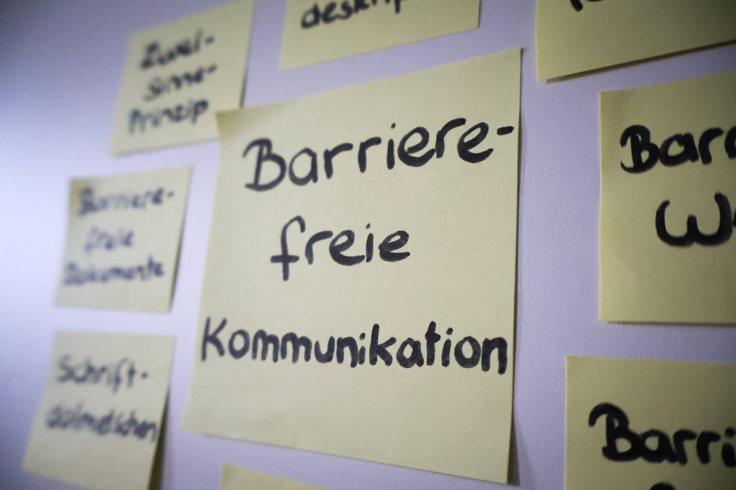 Kommunizieren ist teilhaben. Damit alle Menschen selbstbestimmt teilhaben können, müssen wir Barrieren in der Kommunikation beseitigen: unverständliche Sprache, schlecht lesbare Schrift oder zu laute Umgebung. Solche Hindernisse können jeden Menschen treffen – vorübergehend oder dauerhaft.