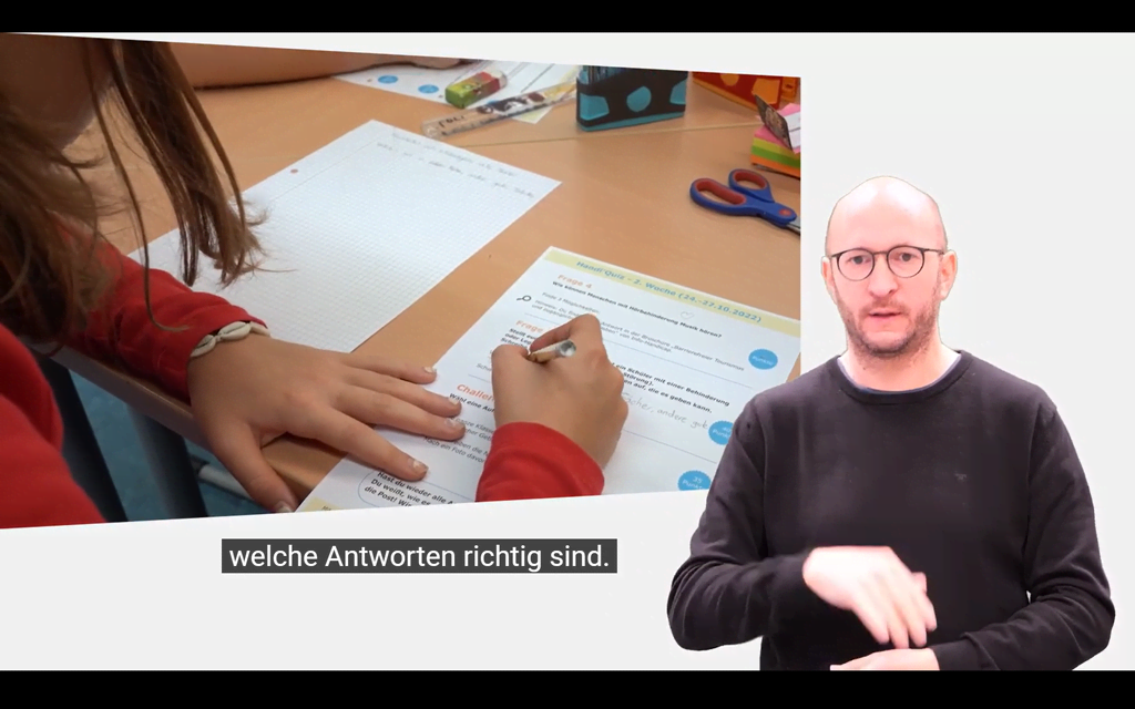 Für manche Menschen können Untertitel störend sein. Deshalb sollte ein barrierefreies Video die Möglichkeit haben, Untertitel ein- und auszuschalten. Und: Untertitel sollten immer am unteren Bildschirmrand stehen. So verdecken sie keine wichtigen Informationen.