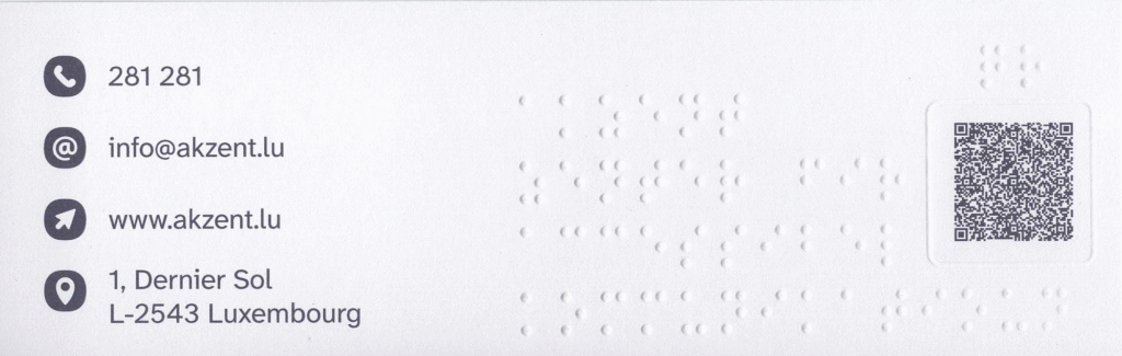 Wir hatten einen Testdruck der Visitenkarte angefragt. Die Braille-Schrift wurde von einer blinden Fachperson geprüft.